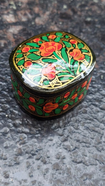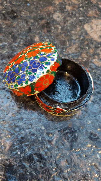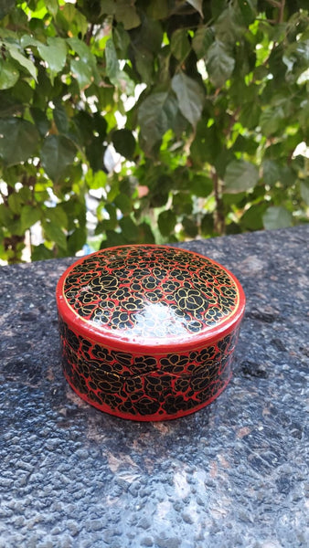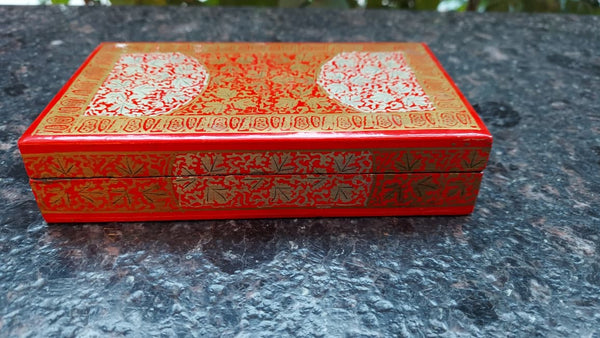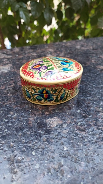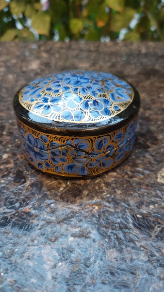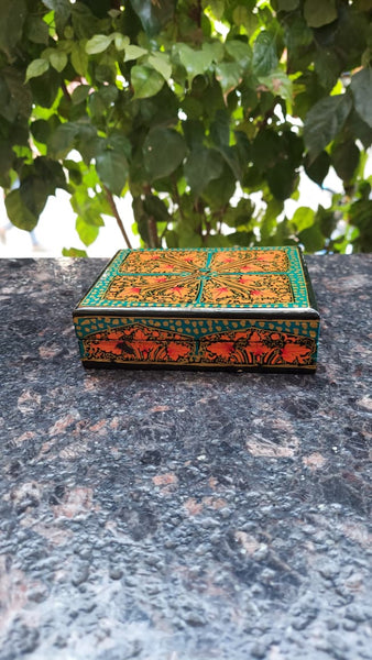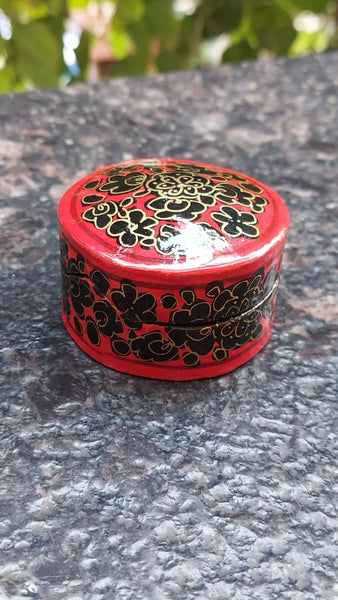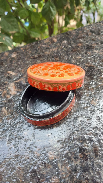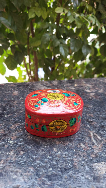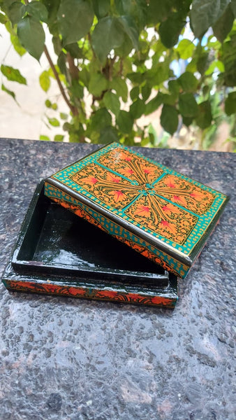 Celebrate traditional craftsmanship with these handmade Kashmiri storage boxes featuring intricate paper mache artwork. Painted with delicate detailing and vibrant artistic patterns, these elegant boxes are perfect for storing jewelry, accessories, or cherished keepsakes while adding a cultural charm to your space.
